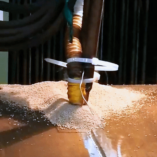 面對重重挑戰(zhàn),生性不服輸的嚴建俊與難題拗上了勁。每一次試驗后,他都做出深刻總結,在失敗原因與解決辦法中反復思考,利用大量休息時間,查閱了相關學術論文技術資料,但“破局”似乎總是遙遙無期。偶然間與同學的一通電話,給這件事帶來了轉機。電話中,與從事海工產品制造并了解環(huán)焊縫焊接的同學的一番交流,為他理清了思緒,找到了針對性的措施。在優(yōu)化了焊接參數的相關匹配后,在攻關上歷盡劫波的嚴建俊終于成功了,雙絲機頭的結構排列、焊劑和焊縫金屬濺出問題、根部焊道清渣困難都得到徹底解決。